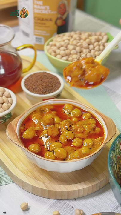 Ingredients: Chickpeas, red chili powder, turmeric, mustard seeds, salt, mustard oil.