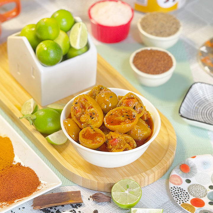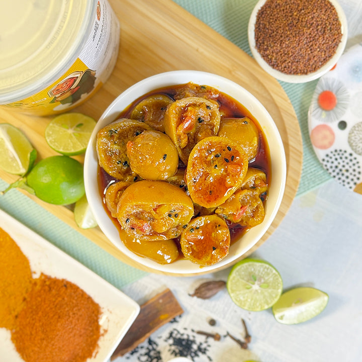 Juicy lemons, sun-cured and soaked in traditional spices, make this pickle a zesty favorite. Whether paired with daal or tucked into a paratha roll, its fresh flavor makes everything better.