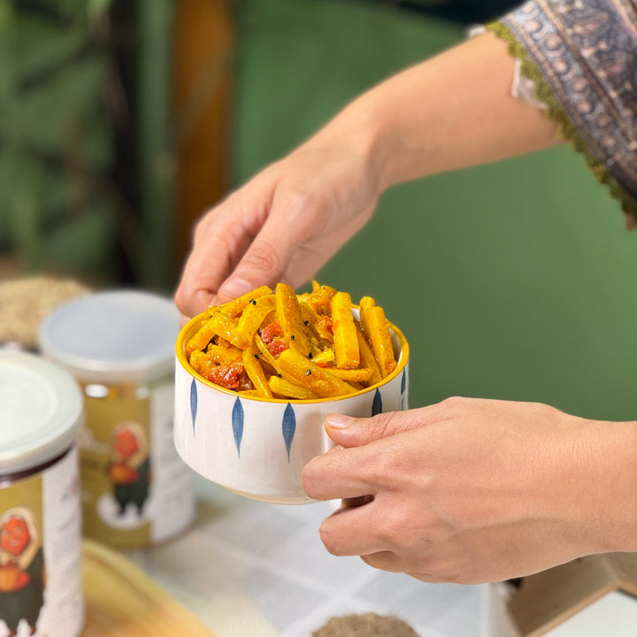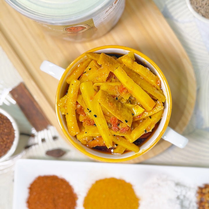 A powerful blend of health and flavor, this pickle uses moringa leaves, known for their Ayurvedic and herbal benefits. Carefully marinated in desi masalas, this achar is for those who love their food with a side of wellness. Earthy, spicy, and full of antioxidants, it’s a jar of tradition and vitality combined.